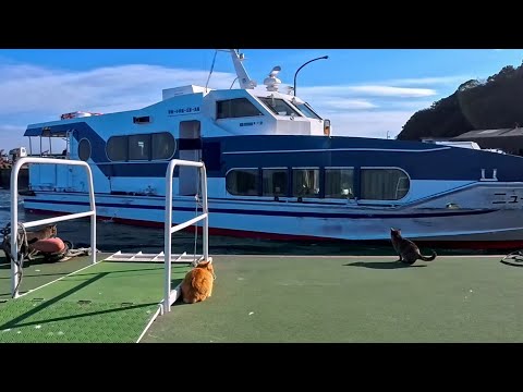 帰りのフェリーを待っていたら…桟橋に猫たちが集まってきて静かにお見送りしてくれた(YouTube)